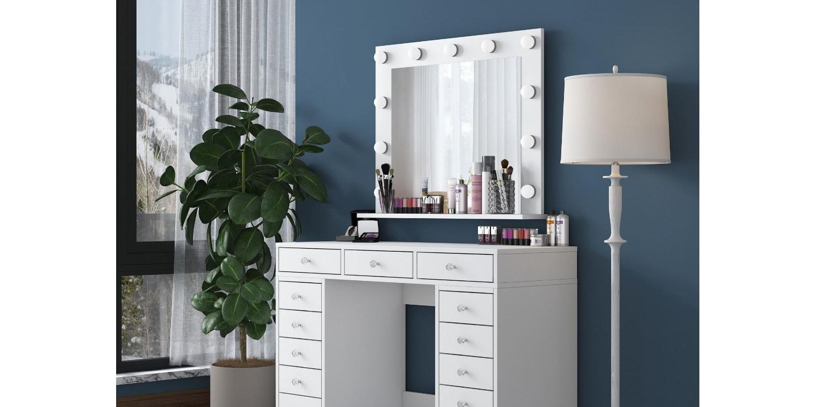 Tualettlaud peegli ja valgustusegaTualettlaud peegli ja valgustusega