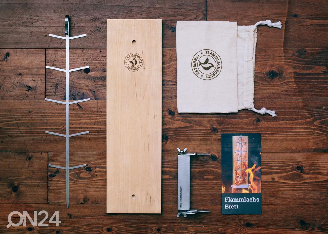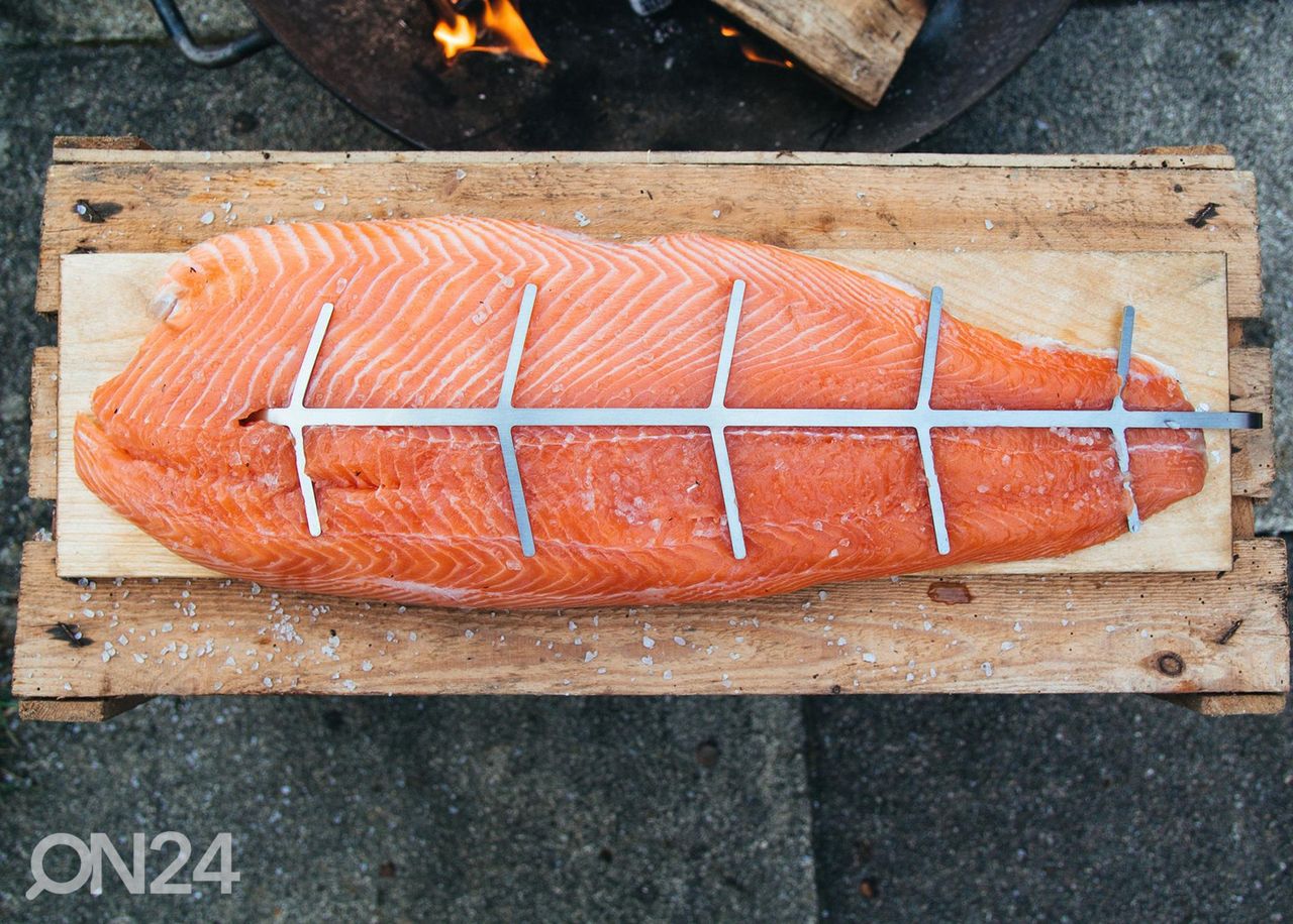 Lõhelaua ühene komplekt pakub võimalust maitsva lõkkekala valmistamiseks elaval tulel