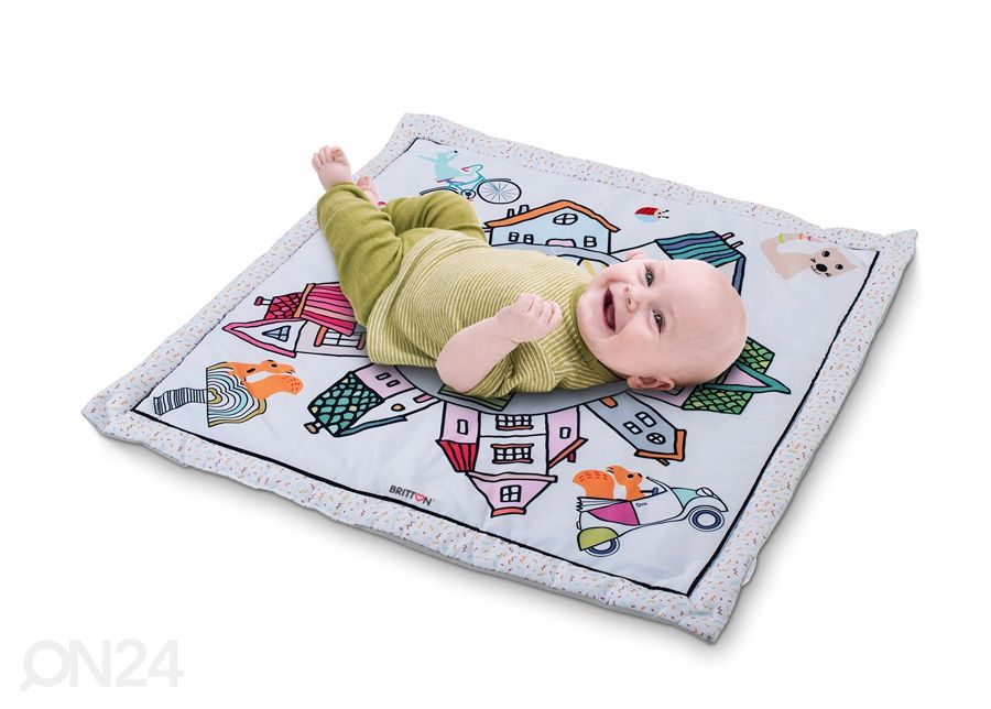 • Tipi-telgi tüüpi tegeluse- ja mängumati küljes on lihtsasti eemaldatavad mänguasjad. Ühel küljeosal on lõbusate motiividega võrkkangas lapse meelte stimuleerimiseks