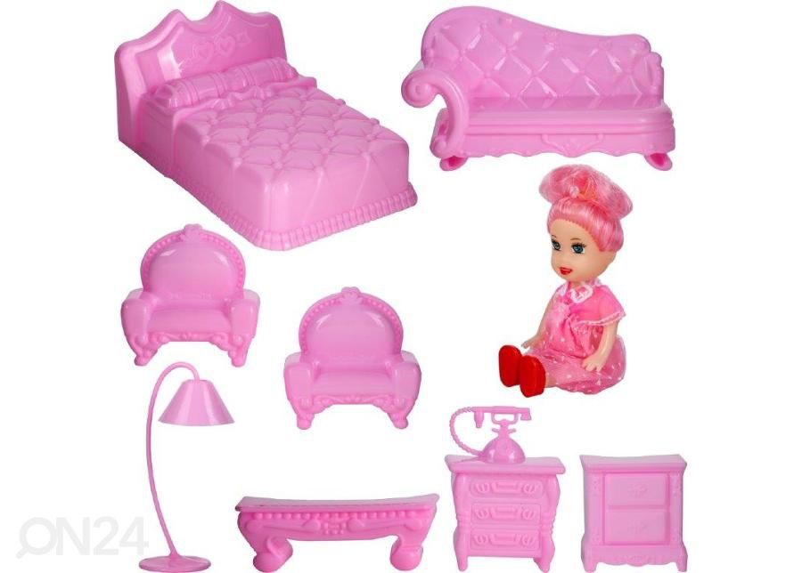 Kokkupandav nukumaja koos mööbli ja nukuga