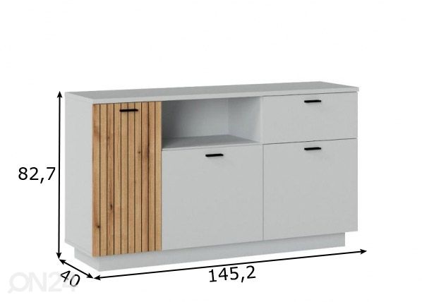Kummut Alverno 145 cm, helehall/tamm mõõdud