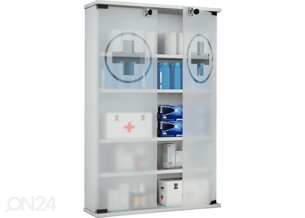 • Esmaabikapp on valmistatud melamiinkattega mööbliplaadist, uksed on karastatud klaasist