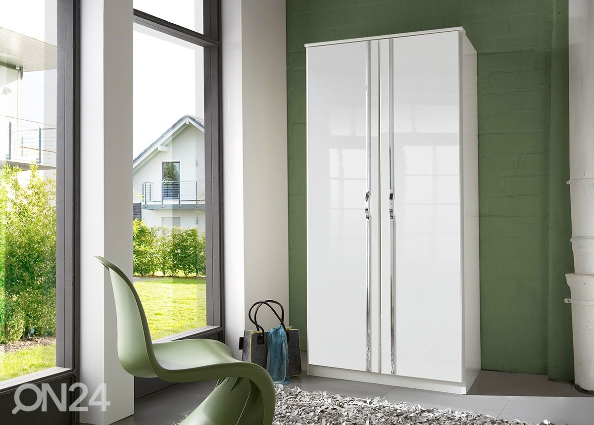 • Kahe uksega riidekapp on valmistatud mööbliplaadist, uksed on kõrgläikega
